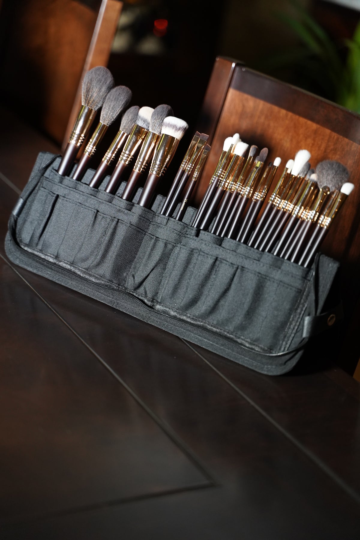 Elevate your makeup game with this audacious 30-piece brush collection that refuses to compromise. Crafted with authentic goat hair for flawless base application and premium squirrel hair for precision detailing, this set pushes boundaries with its bold mix of natural and innovative synthetic bristles. Each brush is engineered to deliver striking results, whether you're sculpting dramatic contours or blending with fearless intensity. The sleek luxury bag keeps your arsenal organized and ready for anything. For those who demand excellence and aren't afraid to make a statement with their beauty routine.